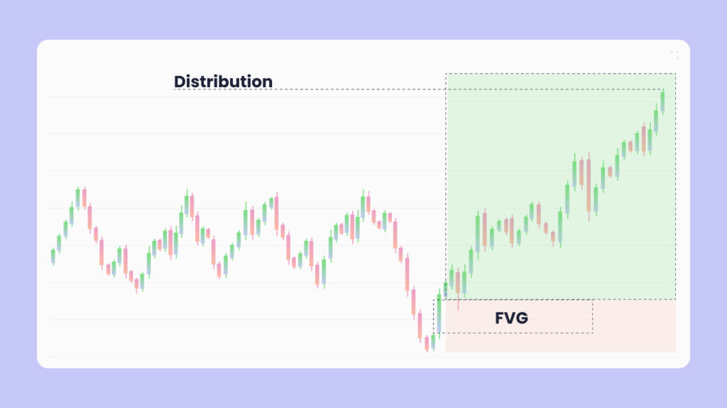 After manipulation, price enters the Distribution phase, the true directional move.